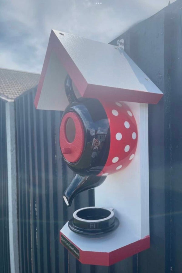 This handcrafted bespoke teapot garden feature bird feeder is a charming addition to any garden.