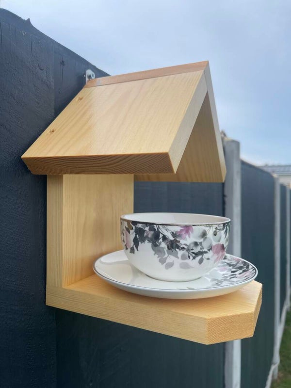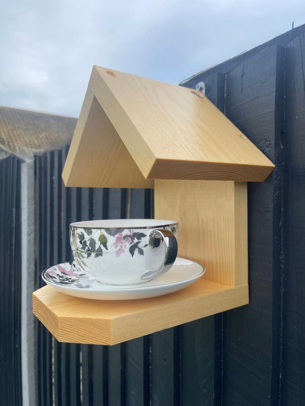 This handcrafted bespoke teacup set garden feature bird feeder is a charming addition to any garden.